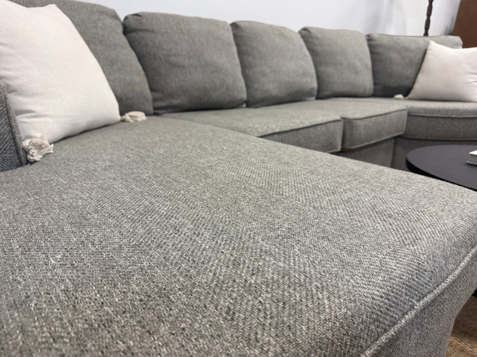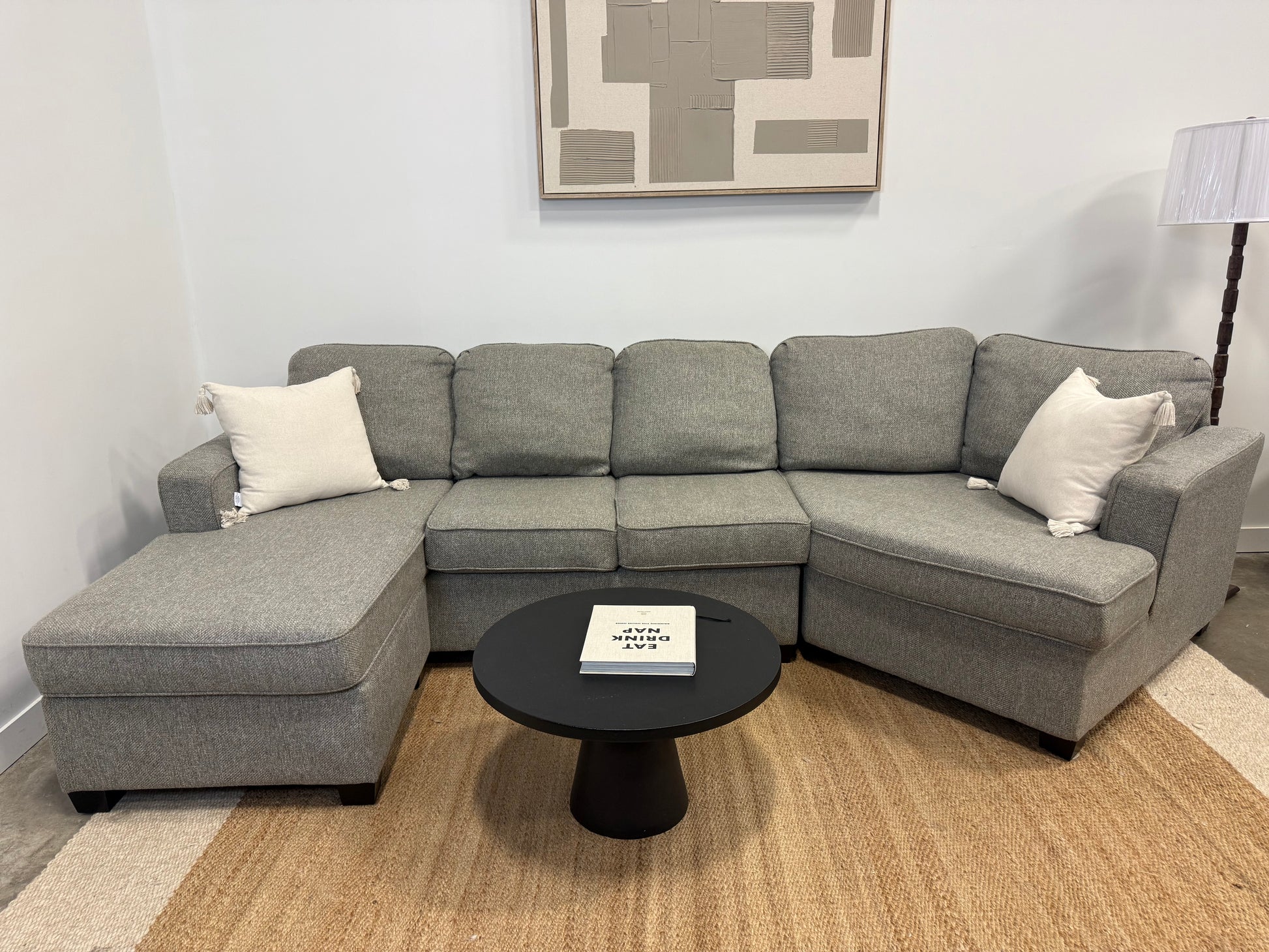 Back cushions are fixed to the couch, and the cozy cuddle corner makes it perfect for lounging or movie nights.